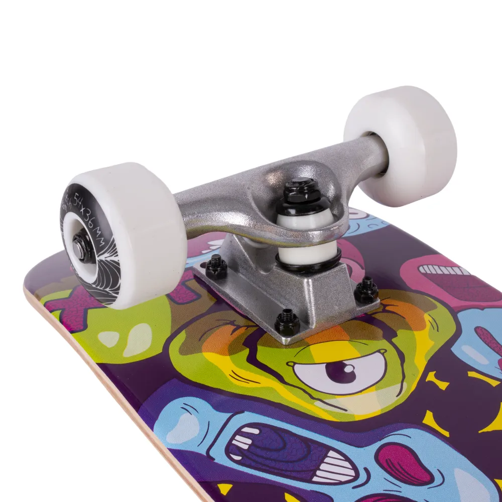 Добавьте яркости в свои ежедневные катания с помощью скейтборда Tech Team Aliens 2024 желтый. Этот продукт от компании Tech Team создан с учетом последних тенденций и технологий. Колеса из материала PU размером 54x36 мм и жесткостью 90А, в сочетании с подшипниками ABEC 9, обеспечивают плавность и стабильность движения. Дека из семи слоев русского клена размером 29.5”х7,5” и типом двойного концевого загиба (Double Kick) гарантирует уверенность в каждом движении. Черная шкурка с графикой на верхней части и яркий принт в желтых тонах с разноцветными монстрами на нижней части делают этот скейтборд неповторимым. С Tech Team Aliens 2024 желтый каждая поездка станет незабываемой!