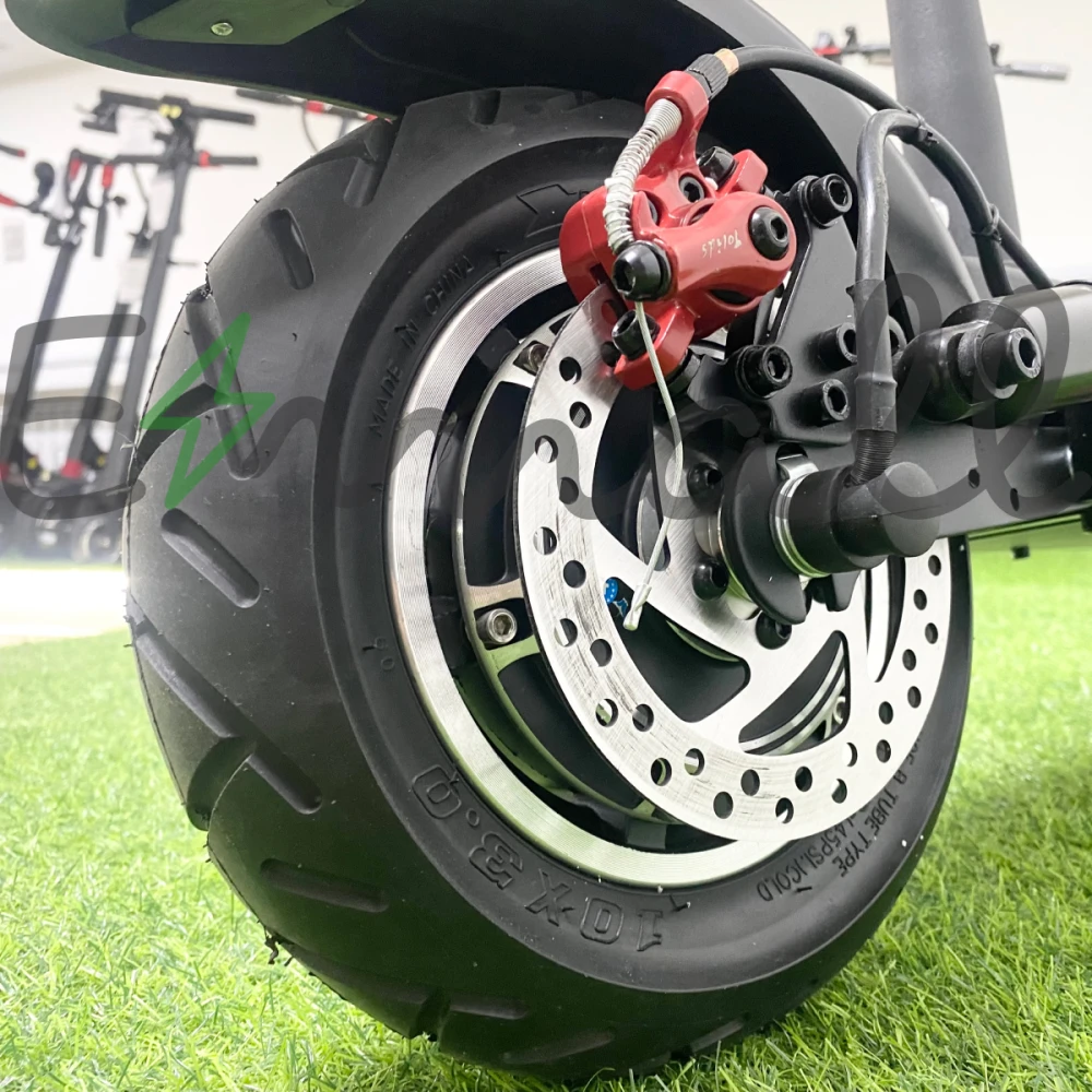 У него большие колеса в 10 дюймов, большая дека, которая предполагает установку дополнительного сидения. Седло сделано на пружинах для дополнительной безопасности езды, подседельный штырь оснащен дополнительной амортизацией.