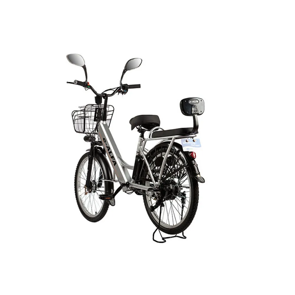 Велогибрид Eltreco e-ALFA с первого взгляда производит впечатление своим утонченным дизайном. Простота и лаконичность корпуса дополнены изысканными деталями, что придает внешнему виду велосипеда неповторимый шарм. Металлическая корзинка на руле выполняет не просто декоративную функцию. Она довольно вместительна и надежно сохранит личные вещи во время поездки. Заниженная алюминиевая рама невероятно прочна и способна выдержать нагрузку до 130 килограммов. Мощный двигатель обеспечивает быстрый и плавный разгон до 35 км/час. Аккумулятор интегрирован в раму и при полном заряде обеспечивает запас хода до 35 километров. Интересной особенностью данной модели является конструкция заднего багажника. Мягкое широкое сиденье можно использовать для перевозки пассажиров, установки детского кресла или размещения крупногабаритного груза. При этом заднее колесо защищено от попадания посторонних предметов пластиковой решеткой. Безопасность движения в темное время суток обеспечивает яркая передняя фара и и габаритный фонарь на крыле заднего колеса. Велогибрид Eltreco e-ALFA по достоинству оценят любители городских и загородных велопрогулок, которым важны комфорт, практичность и надежность.