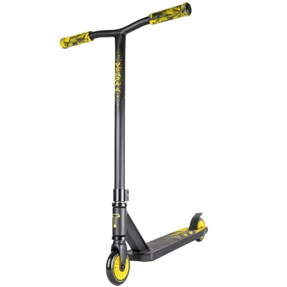 Произведенный в классически черном цвете самокат понравился отечественным пользователям и юным райдерам из СНГ благодаря техническим характеристикам. Простая в управлении техника обещает отличное время провождение, станет надежным другом в освоении новых навыков мастерства. Рулевая часть изготовлена из долговечной стали, дека – их легкого алюминиевая, по длине, ширине и расстоянии ног имеет размеры длину 48 см*10см*32,5см. Прорезиненные грипсы не допускают соскальзывание рук при исполнении трюков. 100-мм колеса в сочетании с учением райдера способны разогнаться до максимальных скоростей, сделать возможное, чтоб трюк состоялся.