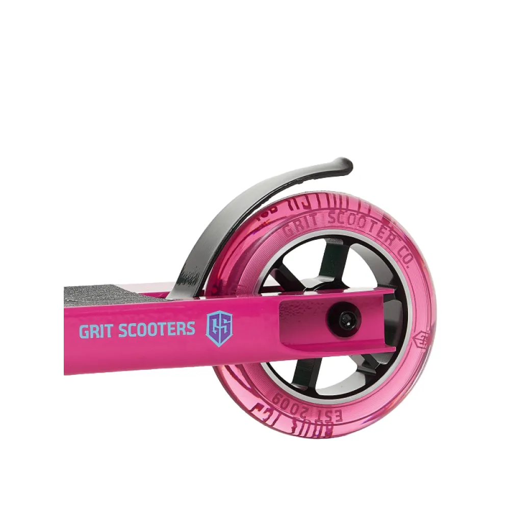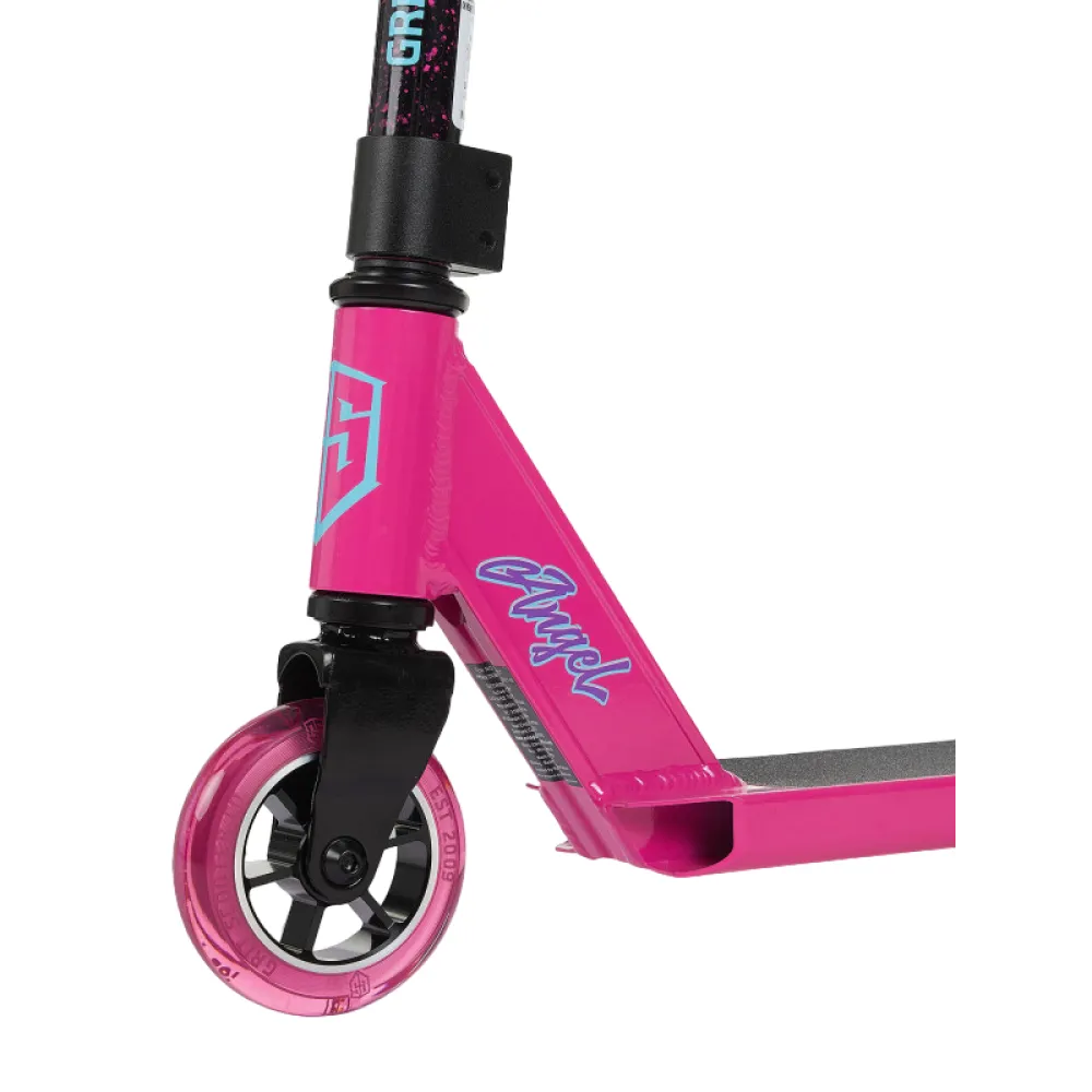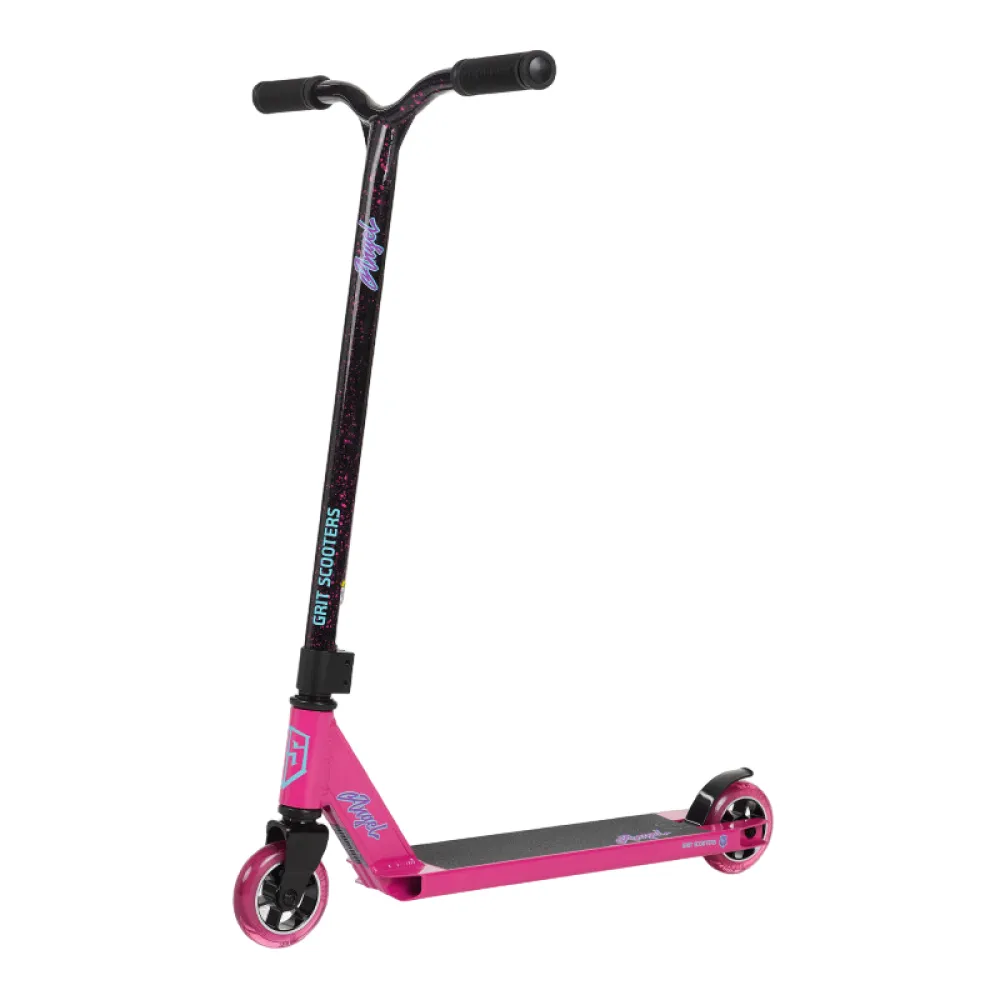 Трюковой самокат Grit Angel, 100 мм, розового цвета - техника, которая особенно понравится пользователям женского пола. Цветовое оформление понравится юным гонщицам и капризным подросткам. Маневренность и габаритные размеры тс подкупают сразу. Модель оборудована полиуретановыми колесами 100 мм.