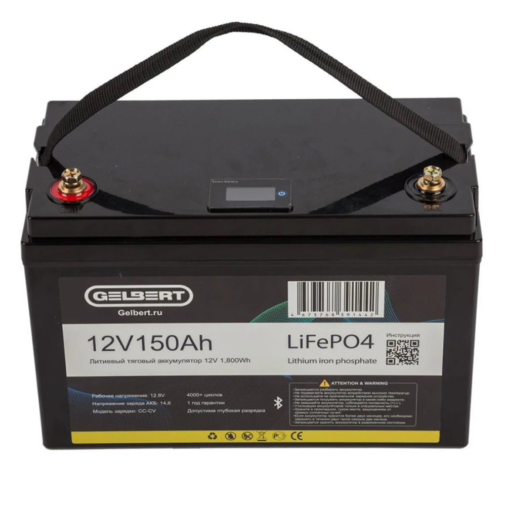 Литиевый тяговый аккумулятор Gelbert LiFePO4 (12V/150Ah/150А/1,800Wh) [6-EVF-150] Bluetooth